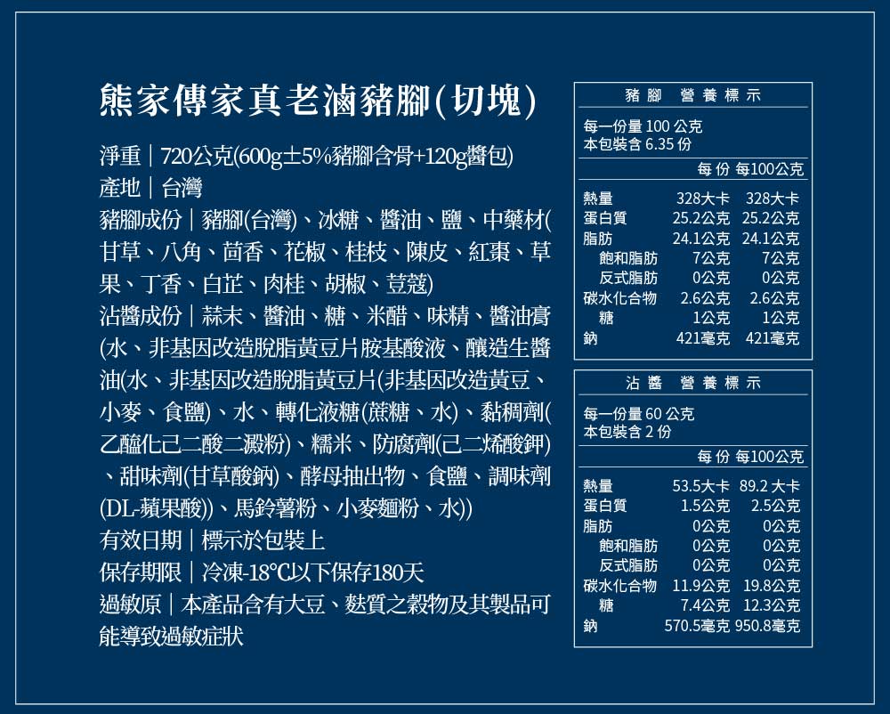 【熊家】萬巒豬腳 總重720g|含600g±5%豬腳含骨+120g醬包
