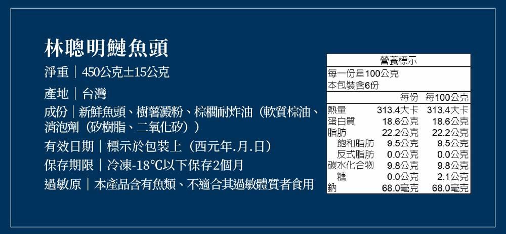 (3個工作天)1組(含300g魚頭)