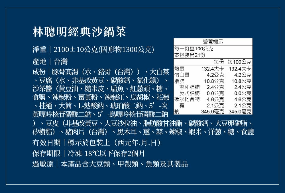林聰明2100g*1+熊家大豬腳*1+樹子白玉海上鮮*1+藥膳鮮蝦*1+熊家豬腳米糕*1+YXZ東北酸菜白肉鍋1200g*1