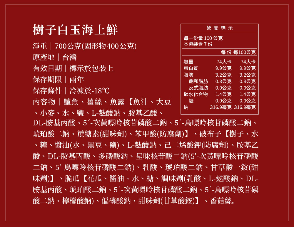 冷凍-18°c,保存時間依包裝標示